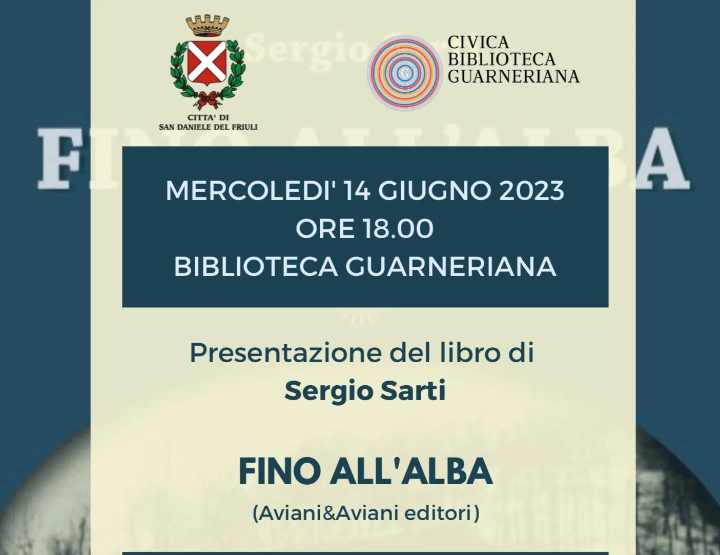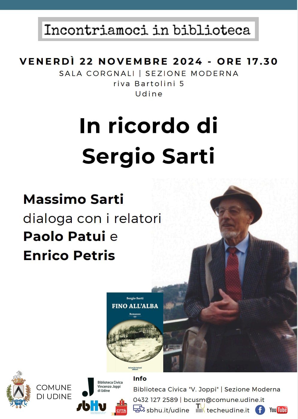 Il libro si può acquistare presso le librerie Tarantola, Friuli e Moderna a Udine oppure su internet. Di seguito alcuni link: La Feltrinelli: https://www.lafeltrinelli.it/fino-all-alba-libro-sergio-sarti/e/9788877723451?queryId=8379e3ccdf6aa1efd67705226defd80f Amazon: https://www.amazon.it/Fino-allalba-Sergio-Sarti/dp/8877723459#customerReviews